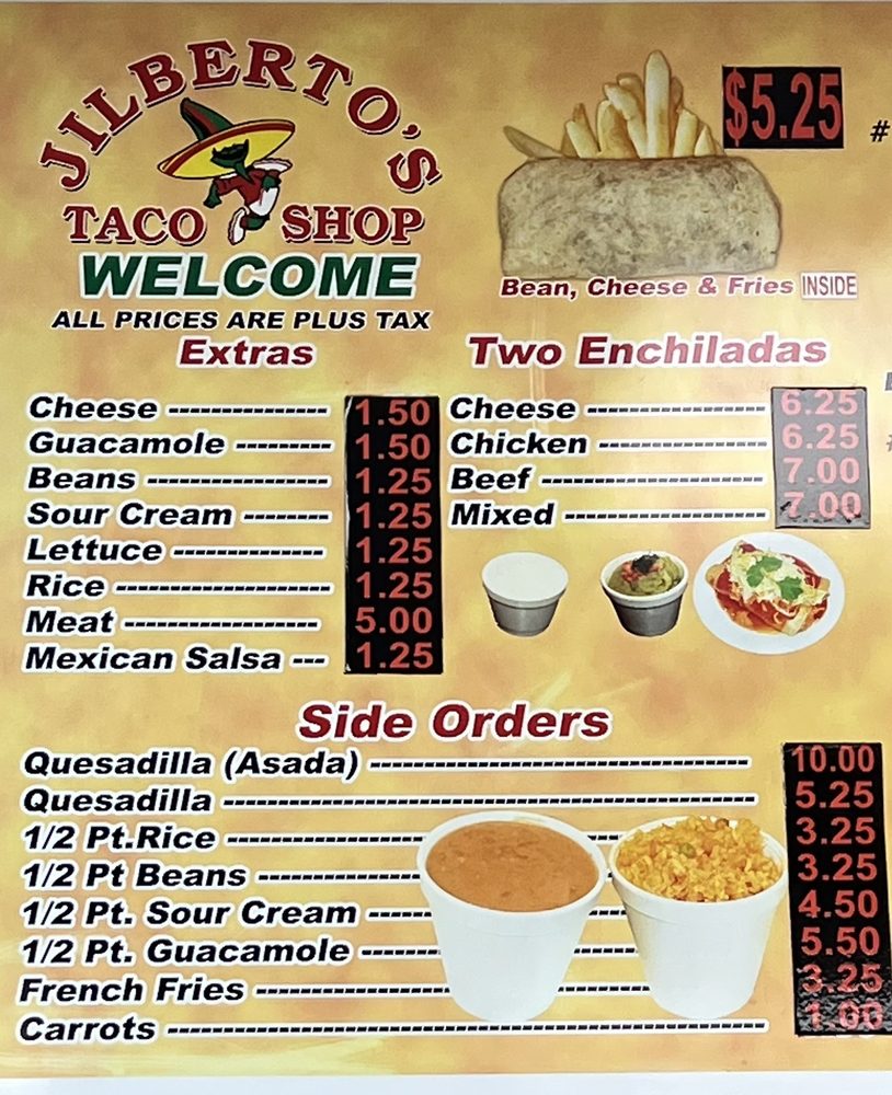 Enjoy flexible dining with options for breakfast, lunch, late-night cravings, and even a drive-thru for on-the-go. With outdoor seating, happy hour specials, and private parking, Jilberto's provides a welcoming atmosphere for families, friends, and groups alike.